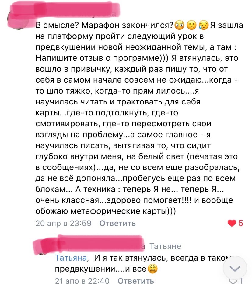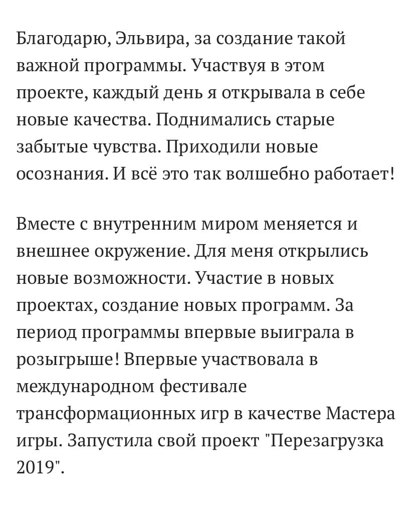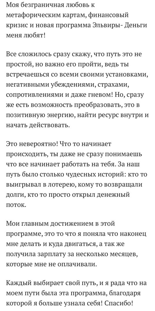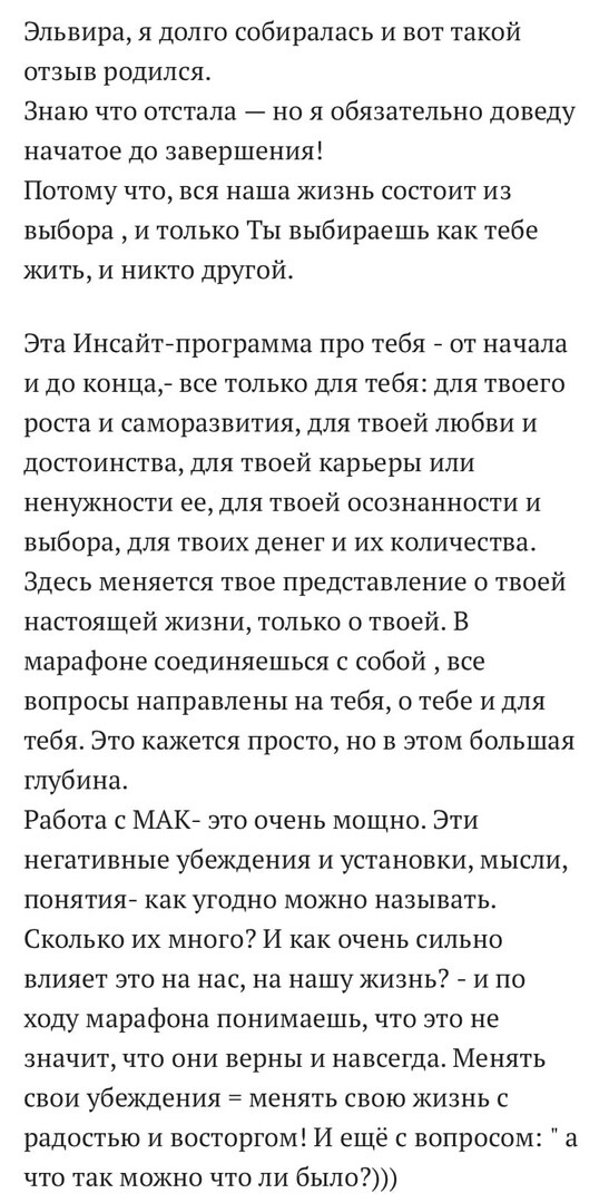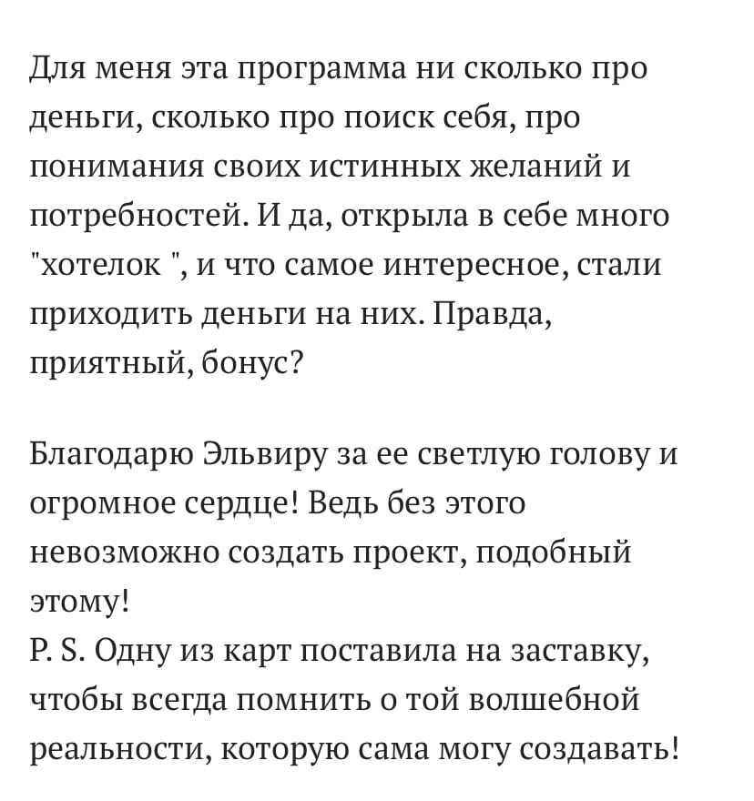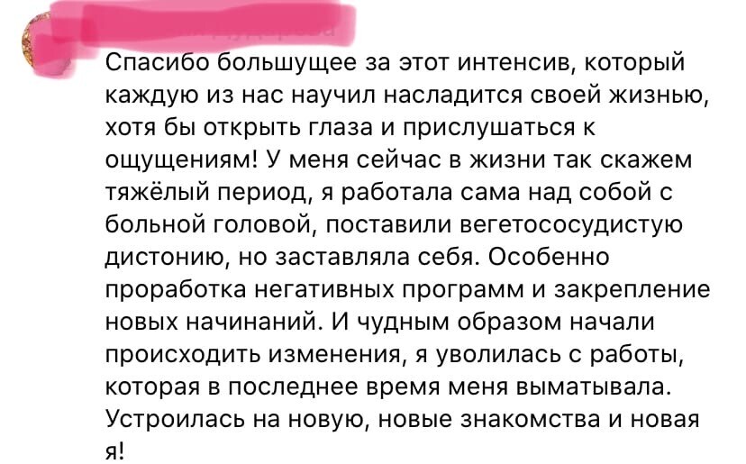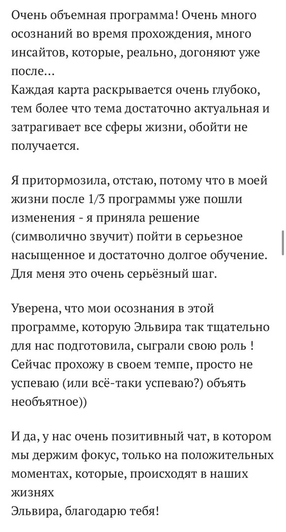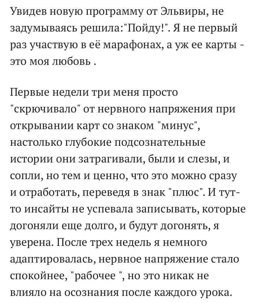 - Не смотря на то, что программу ты проходишь самостоятельно (в любое удобное тебе время), ты почувствуешь круг единомышленников, нашу энергию, синергию - на этой волне твои трансформации будут в 100 раз легче и эффективнее