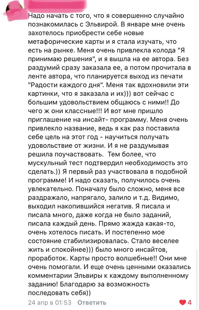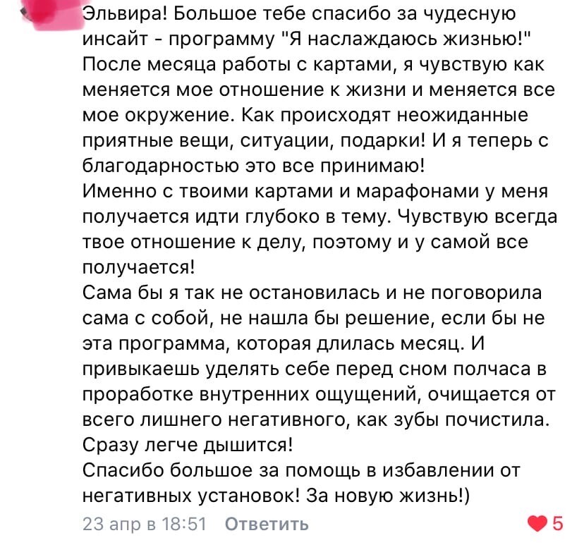 - Инсайт-программа «Я наслаждаюсь жизнью» или «Деньги любят меня» (на выбор)